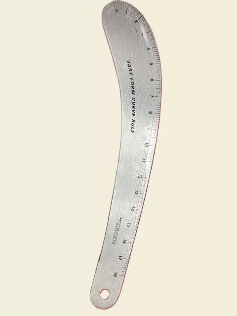 Easily draws a variety of curves by rotating the tool—an ideal replacement for a full set of French curves. Perfect for pattern makers and graphic artists. Calibrated in 1/8″ increments on both sides of one edge.