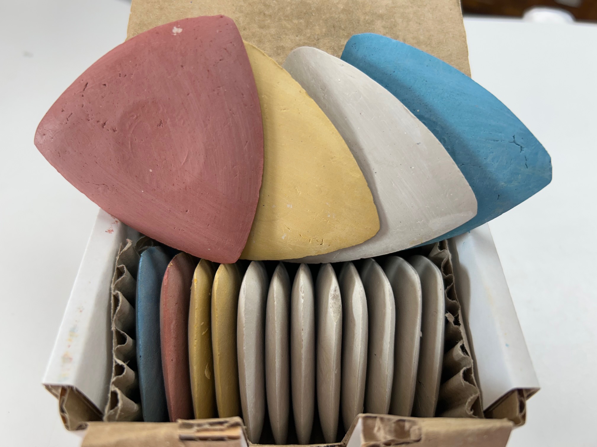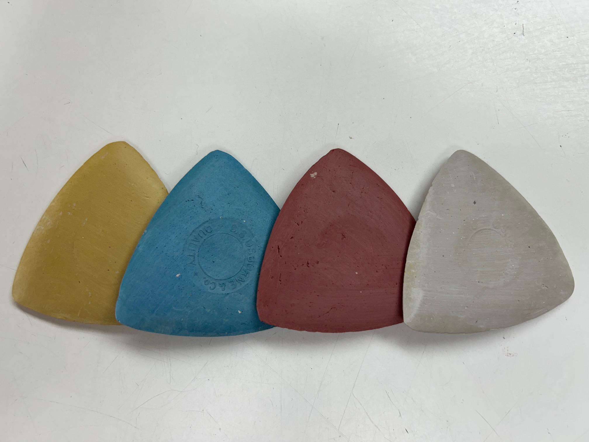 Clay based and easy to erase. Also works on glass and vinyl that other chalks do not. Due to the shape of this chalk a sharp marking edge is maintained.